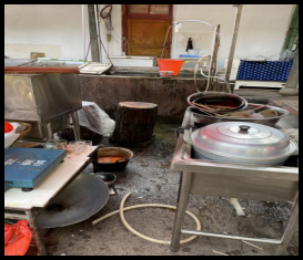 4餐飲具清潔區(qū)及食物粗加工區(qū)域環(huán)境衛(wèi)生差,餐廚用具清洗不及時,泔水桶未帶蓋。