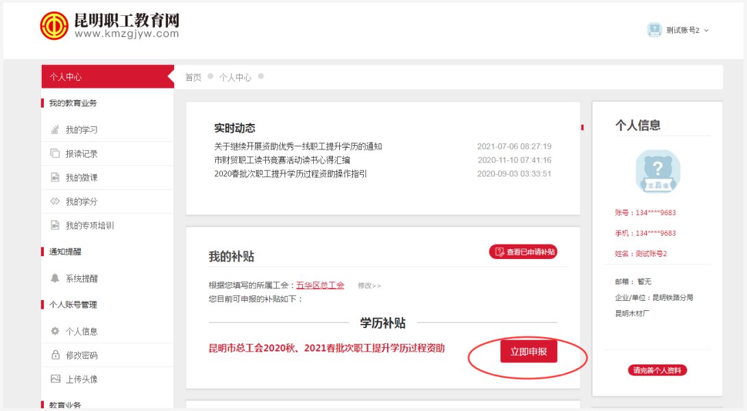 第四步:職工選擇可申請的補貼,點擊【立即申報】。