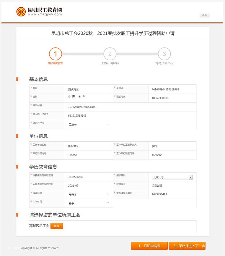 需要填寫的內容:1、基本信息,2、單位信息,3、學歷信息;注意:再次確認單位工會所屬的區(qū)總工會,產業(yè)、直屬單位工會信息,如有錯誤及時進行修改。