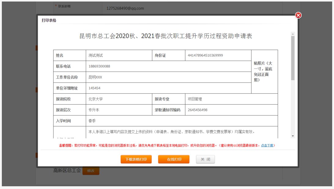 填寫完申請表后,進行第二次檢查,檢查無誤進行點擊“打印申請表”,打印有兩種方式:1、下載申請表,然后打印,2、在線打印申請表。
