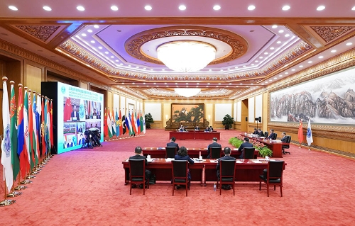 9月17日,國家主席習(xí)近平在北京以視頻方式出席上海合作組織成員國元首理事會第二十一次會議并發(fā)表重要講話。新華社記者 申宏 攝