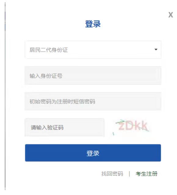 3.到了考生登錄頁(yè)面,按要求填寫(xiě)“身份證號(hào)碼”、“初始密碼”、“驗(yàn)證碼”,確認(rèn)無(wú)誤后點(diǎn)擊“登錄”條目。