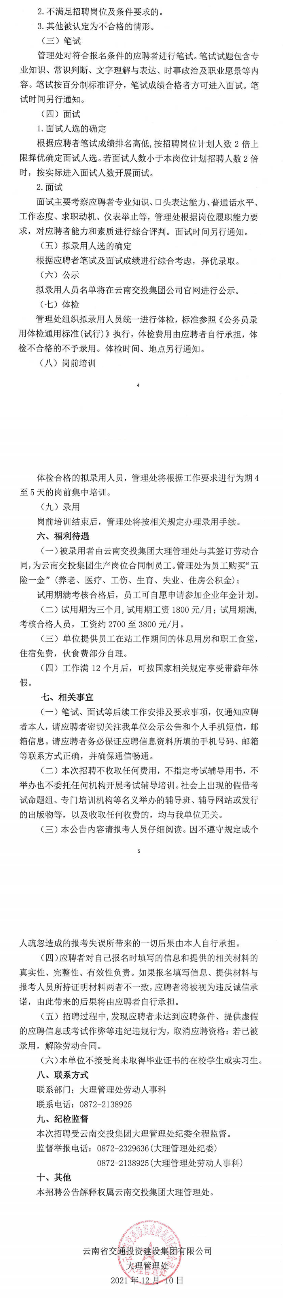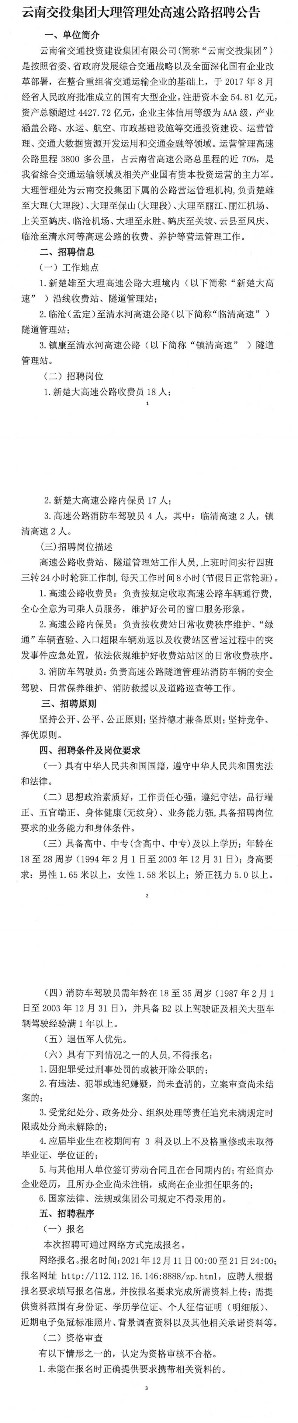 云南交投集團(tuán)大理管理處高速公路招聘公告