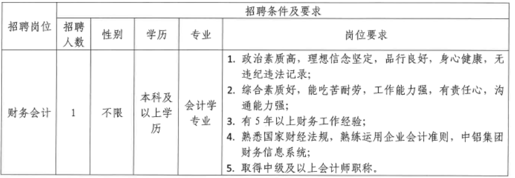 云南云鋁匯鑫經(jīng)貿(mào)有限公司公開招聘財務會計人員的公告
