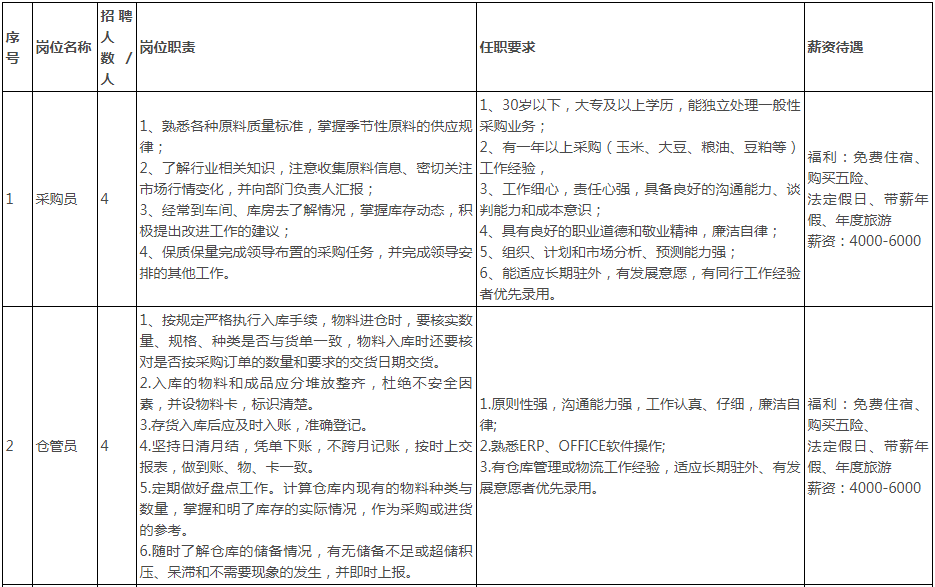 備注:1.以上崗位一經(jīng)錄用,簽訂勞動合同,繳納社會保險;