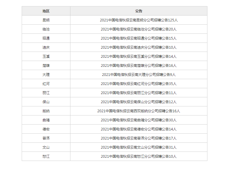 2021中國(guó)電信秋招云南昆明分公司招聘​