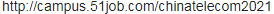 以上流程及信息若有變動(dòng),敬請(qǐng)關(guān)注中國(guó)電信集團(tuán)有限公司——“招賢納士”專欄()、前程無(wú)憂合作網(wǎng)站()和中國(guó)電信校園招聘微信公眾號(hào)(搜索“中國(guó)電信校園招聘”或“中國(guó)電信校招速遞”),瀏覽最新的校招信息。