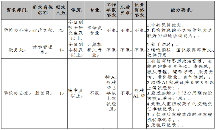 為適應(yīng)學(xué)校發(fā)展的需要,需面向社會誠聘4名工作人員,現(xiàn)將有關(guān)事項(xiàng)公告如下: