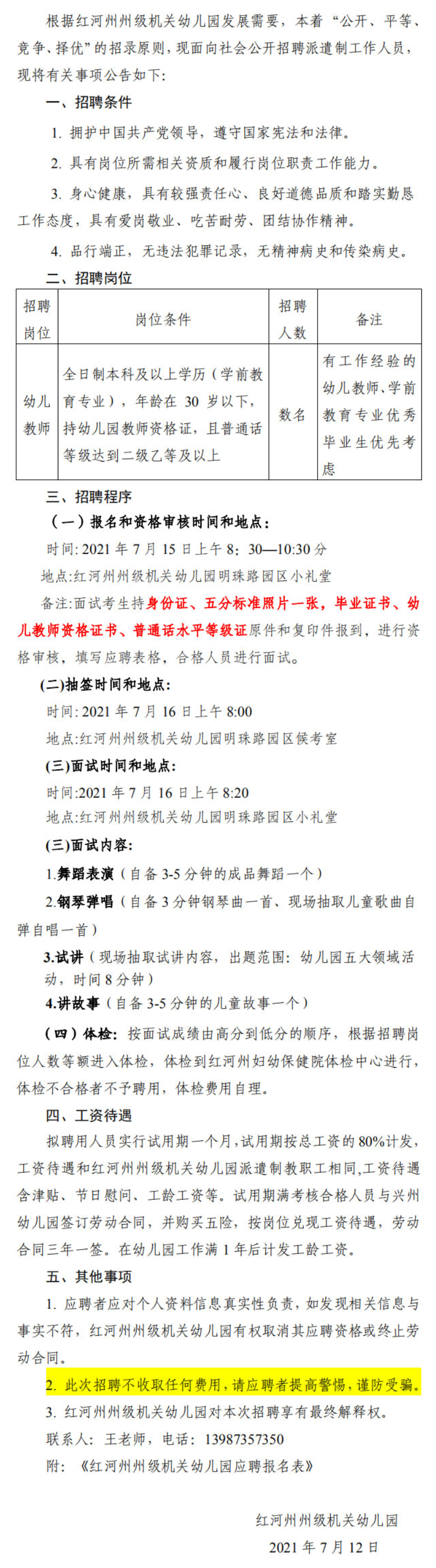 紅河州州級(jí)機(jī)關(guān)幼兒園招聘派遣制教師公告