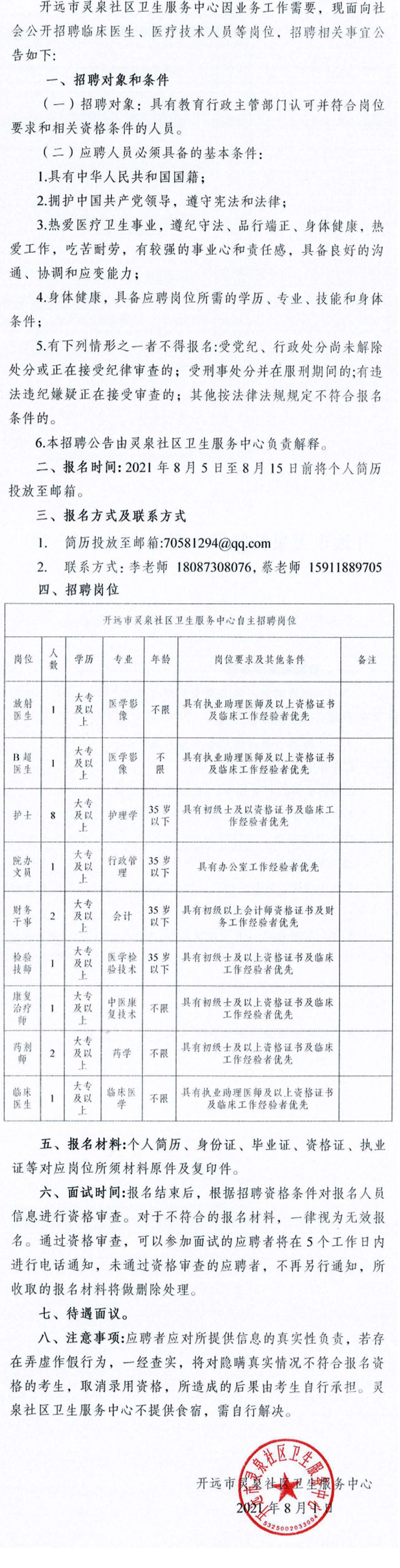紅河州開遠市靈泉社區(qū)衛(wèi)生服務(wù)中心招聘公告