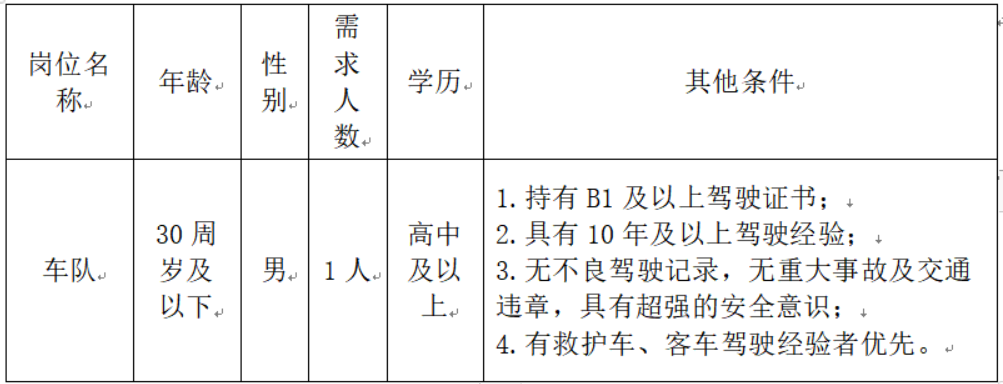 因工作需要,根據(jù)科室用人計劃,經(jīng)醫(yī)院研究決定,計劃招聘車隊駕駛?cè)藛T1名,現(xiàn)將有關(guān)招聘事宜公告如下。