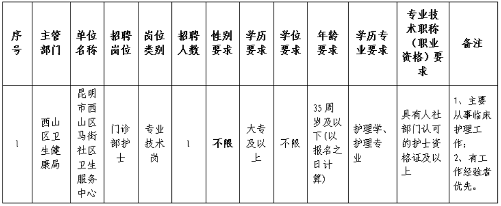 昆明市西山區(qū)馬街社區(qū)衛(wèi)生服務中心招聘編外專技人員公告