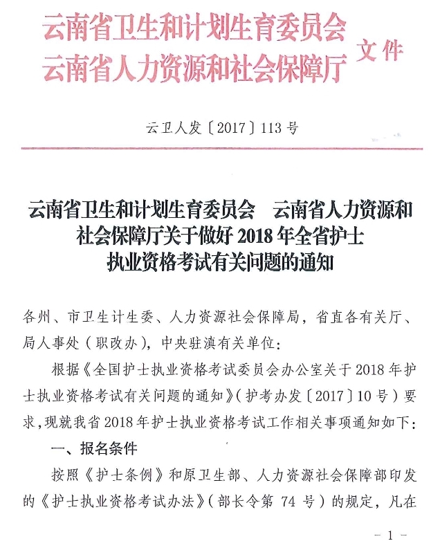 云南省衛(wèi)計(jì)委云南省人社廳關(guān)于做好2018年全省護(hù)士執(zhí)業(yè)資格考試有關(guān)問(wèn)題的通知
